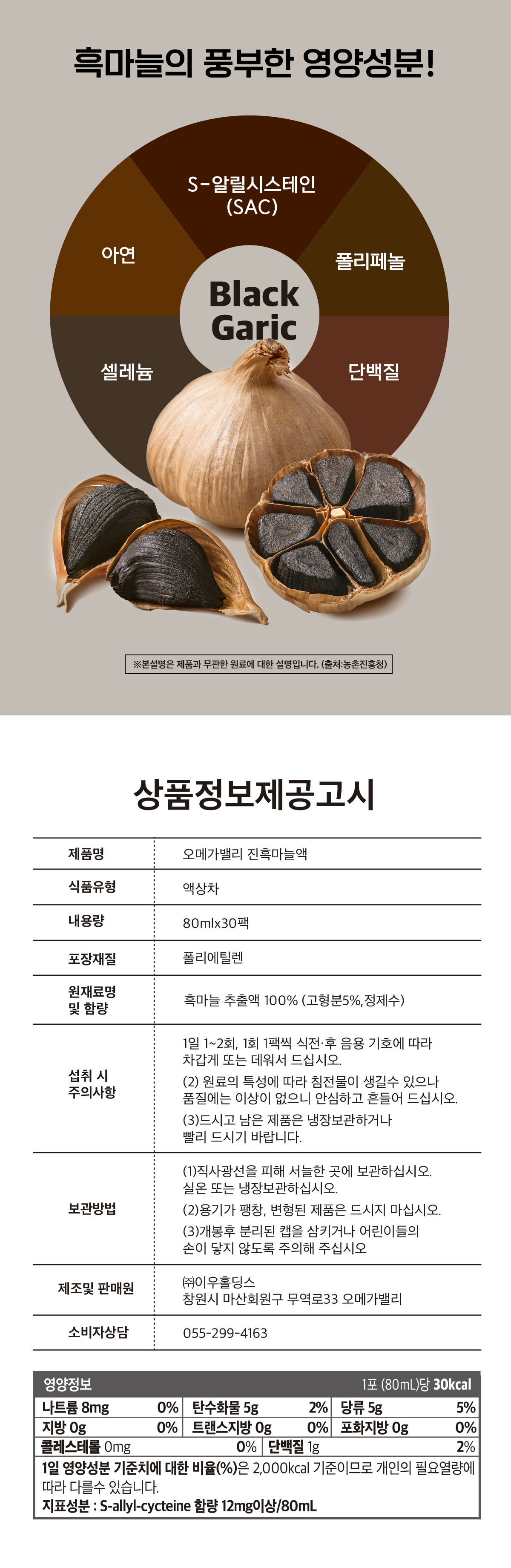 흑마늘100% 흑마늘액 80ml x 30팩 [국내산]